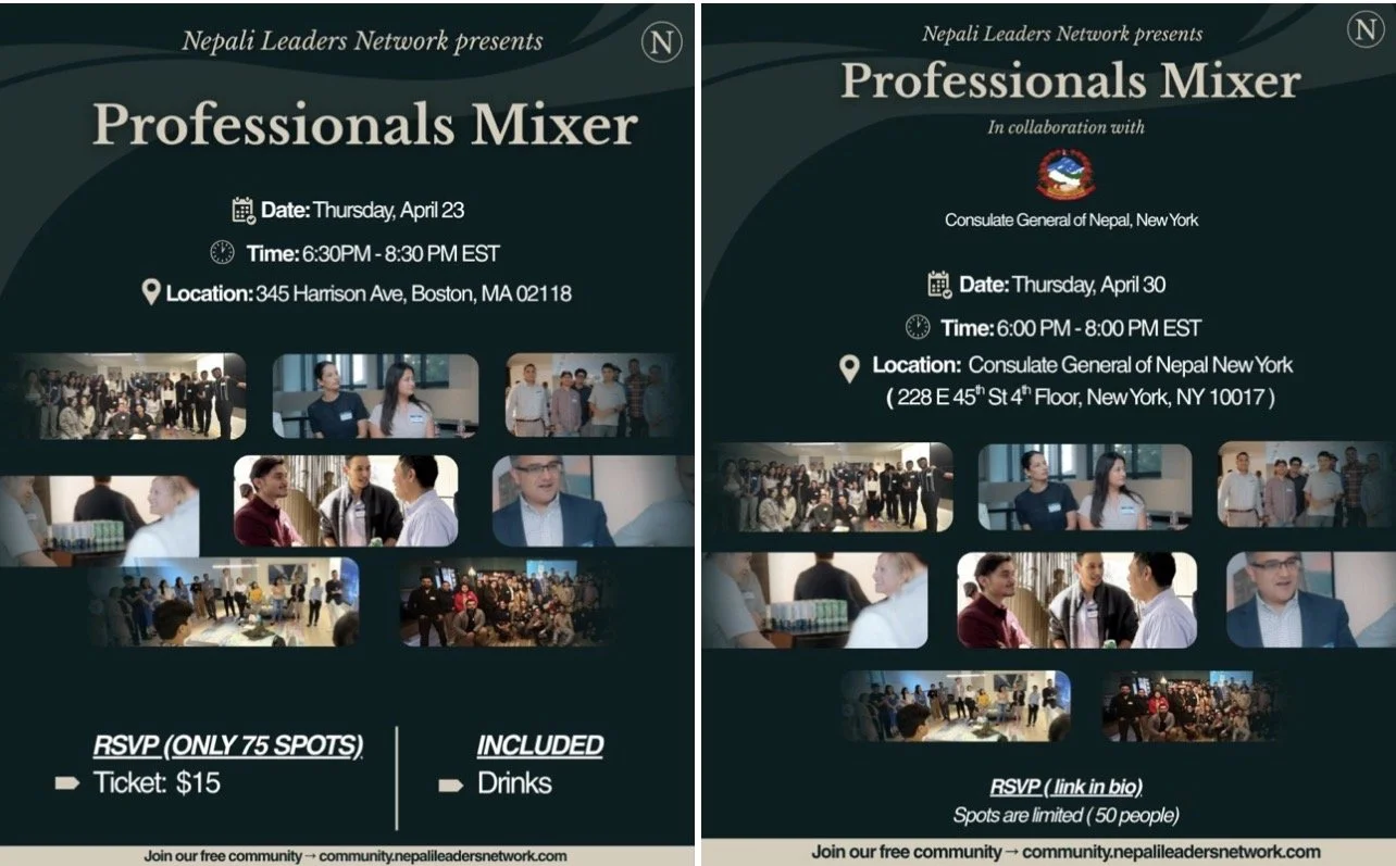 • NYC — April 30 (our first NYC mixer, in collaboration with the Consulate General of Nepal, New York)